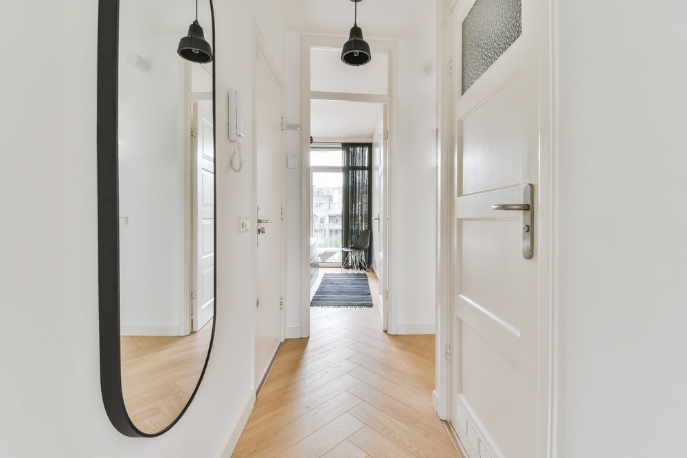 Changing up the color palette of your hallway is an easy way to create interest– without taking up space. You can paint the walls your favorite color, get an exciting runner rug, or install a cool light fixture. This strategy is sure to surprise your guests and make the walk to your room much more enjoyable.