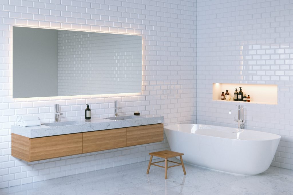 In bathrooms, accent lighting comes in varied forms, depending largely on the specific functions and layout of your bathroom. Accent lighting draws attention to architecture and creates an element of awe. It also enhances the functionality of your bathroom, as with the options suggested below.
