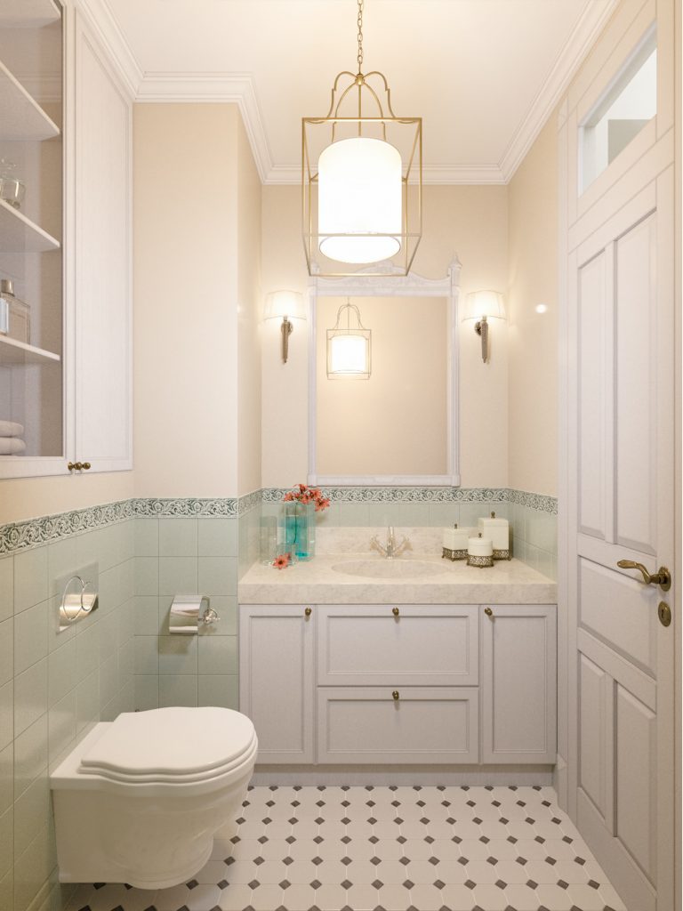 Not all bathrooms are a major or grand part of every home. Some bathrooms are small and intimate like small-scaled master bathrooms, powder baths, Jack and Jill kids’ baths, pool baths… so light for the function of the bathroom. For example, pool baths are utilitarian, so a simple vanity light over the mirror would be sufficient.