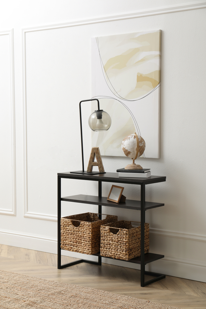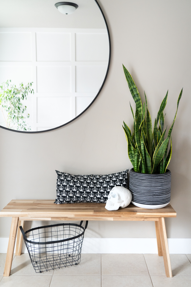 After adding a bench, next on our priority list is definitely an entry table. They can give you extra storage, show off your style, and are a great place for some accent lighting.
