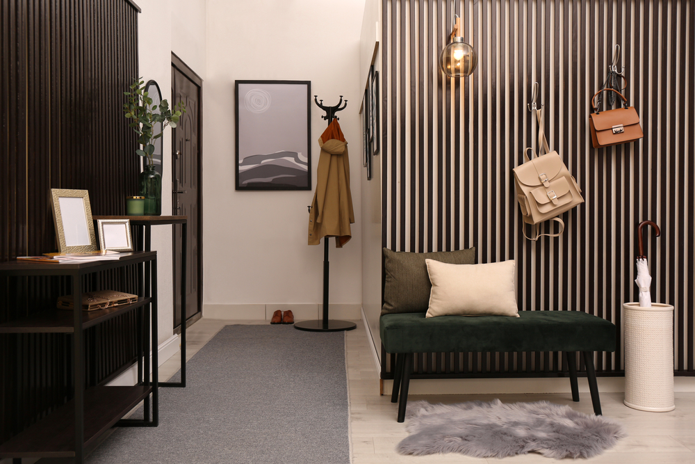 This creative entryway’s sconce is modern, chic, and well-placed. Accent lighting is key to making your life easier. No more fumbling around in the dark to tie your shoes or buckle the strap on your heels!
